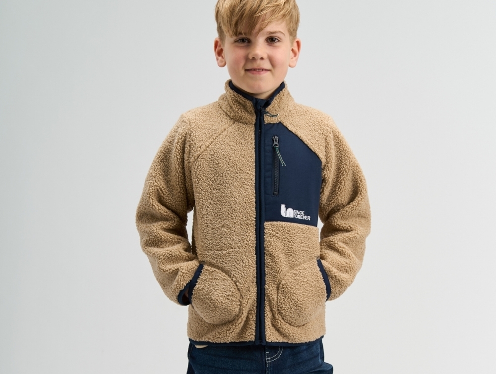 Made from 100% polyester, the soft teddy texture provides light insulation and works well as both an outer and mid-layer on cooler days.