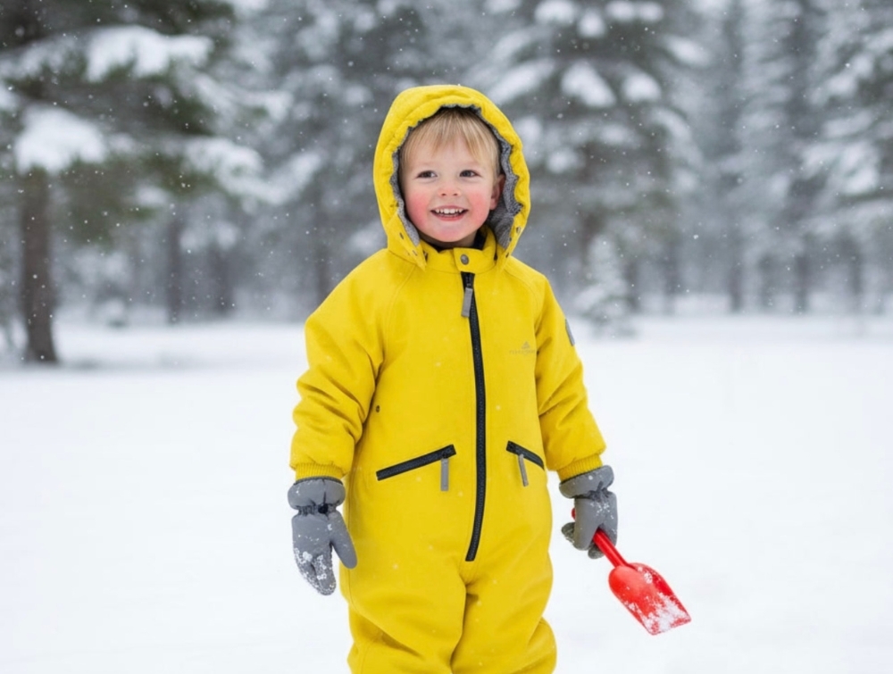 The snowsuit is perfect for cold and wet weather and is often used in outdoor kindergartens.