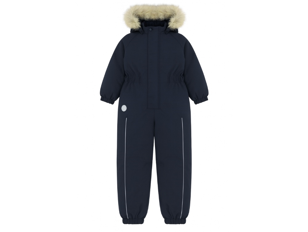 The snowsuit has a removable hood with buttons and synthetic fur, which can be detached with buttons. The snowsuit is water-resistant (10,000 mm) and breathable (8,000 g/m2/24 hours).