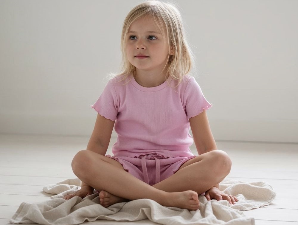 Short-sleeved boxy t-shirt in ribbed pink from Wheat.