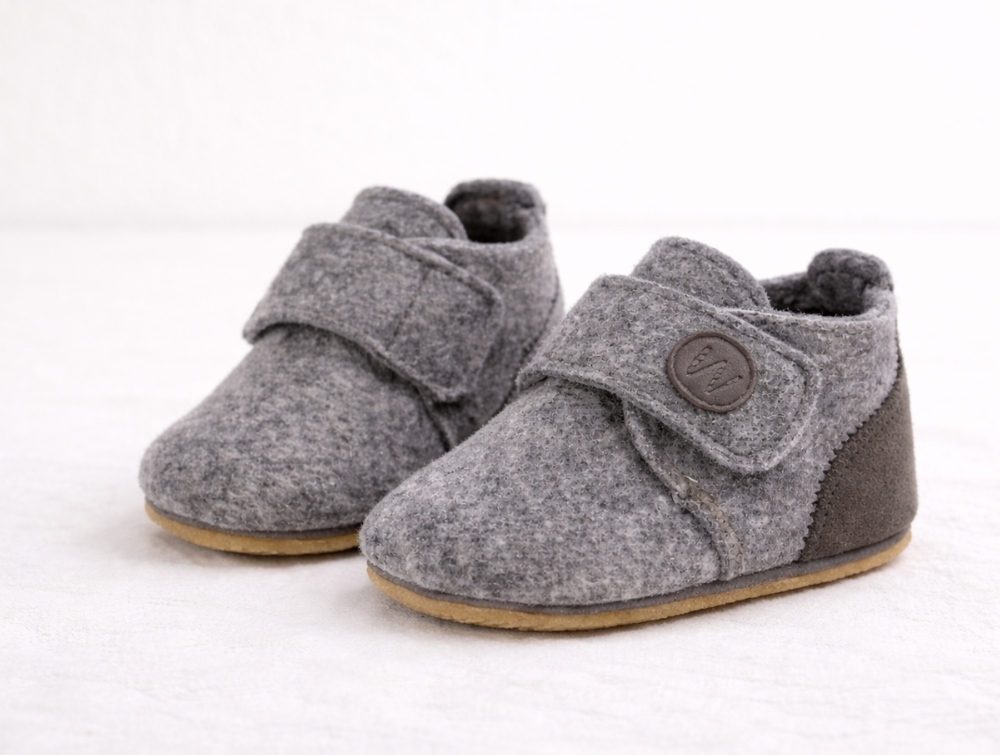 Brown soft leather slippers from Pom Pom. Flexible anti-skid rubber outsole and easy velcro closure.